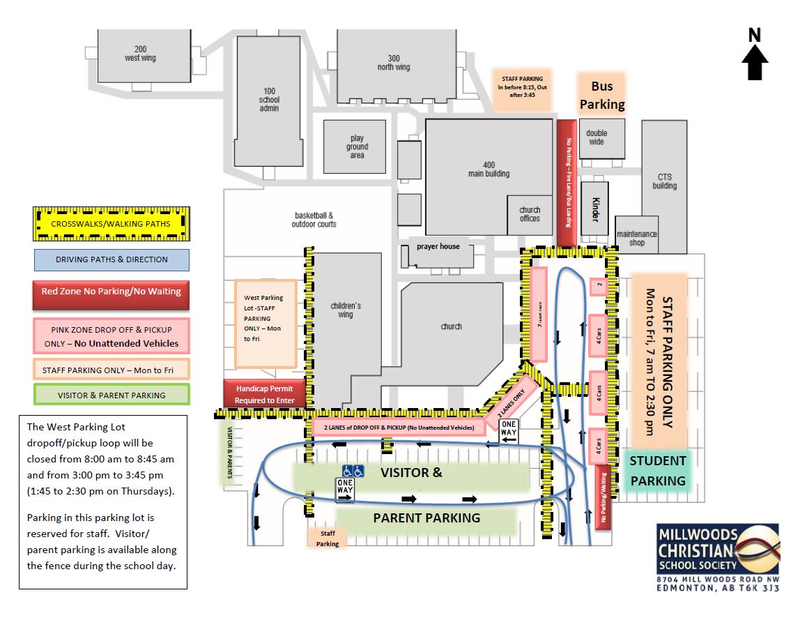 - For the safety of all students, parents and staff, please follow the driving direction arrows indicated on the map